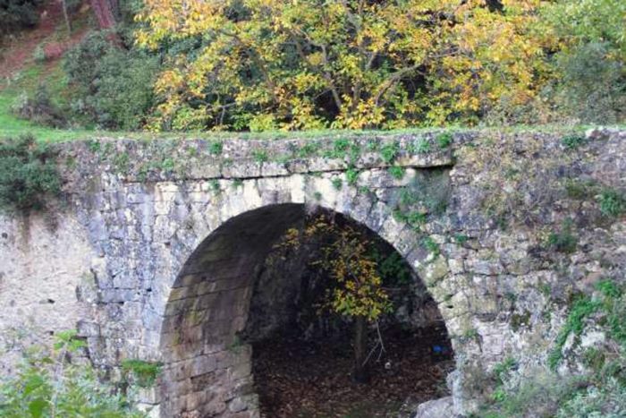 Ο λαός το συνδύασε με την φυγή προς την Τροία της ωραίας Ελένης και την εμφάνιση τη νύχτα του φαντάσματος της γυναίκας του πρωτομάστορα, η οποία θυσιάστηκε για να θεμελιωθεί το γεφύρι… Φέρει μία στρώση καμαρόλιθων, η διάμετρος της καμάρας του υπολογίζεται στα περίπου 4 μ., ενώ το κατάστρωμα, ο διάδρομος διάβασης, είναι επίπεδος.