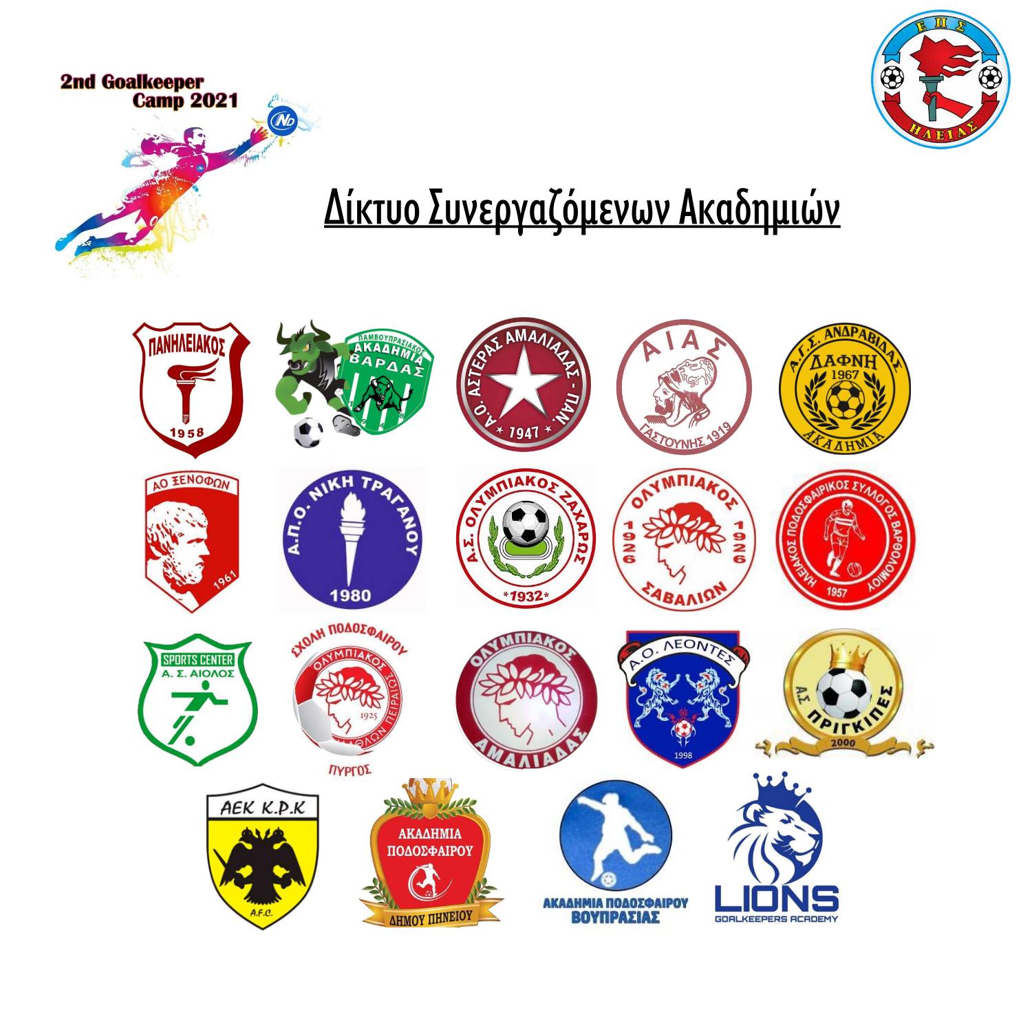 Ξεχωριστό χρώμα με το δυναμικό παρόν τους στο 2nd Goalkeeper Camp 2021, την όρεξή τους για δουλειά και το ταλέντο τους, θα δώσουν λοιπόν για μία ακόμη χρονιά δεκάδες νεαροί αθλητές από τους: Πανηλειακό, Π.Α.Ο. Βάρδας, Αστέρα Αμαλιάδας, Αίαντα Γαστούνης, Δάφνη Ανδραβίδας, Ξενοφώντα Κρεστένων, Νίκη Τραγανού, Ολυμπιακό Ζαχάρως, Ολυμπιακό Σαβαλίων, Ηλειακό Βαρθολομιού, Αίολο Πύργου, Ολυμπιακό Σ.Φ.Π. (Σχολή Πύργου), Ολυμπιακό Αμαλιάδας, Λέοντες Αμαλιάδας, Πρίγκηπες Λεχαινών, Α.Ε.Κ. Κάτω Παναγιάς Κυλλήνης, Ακαδημία Ποδοσφαίρου Πηνειού, Ακαδημία Ποδοσφαίρου Βουπρασίας και Lions Goalkeeper Academy.