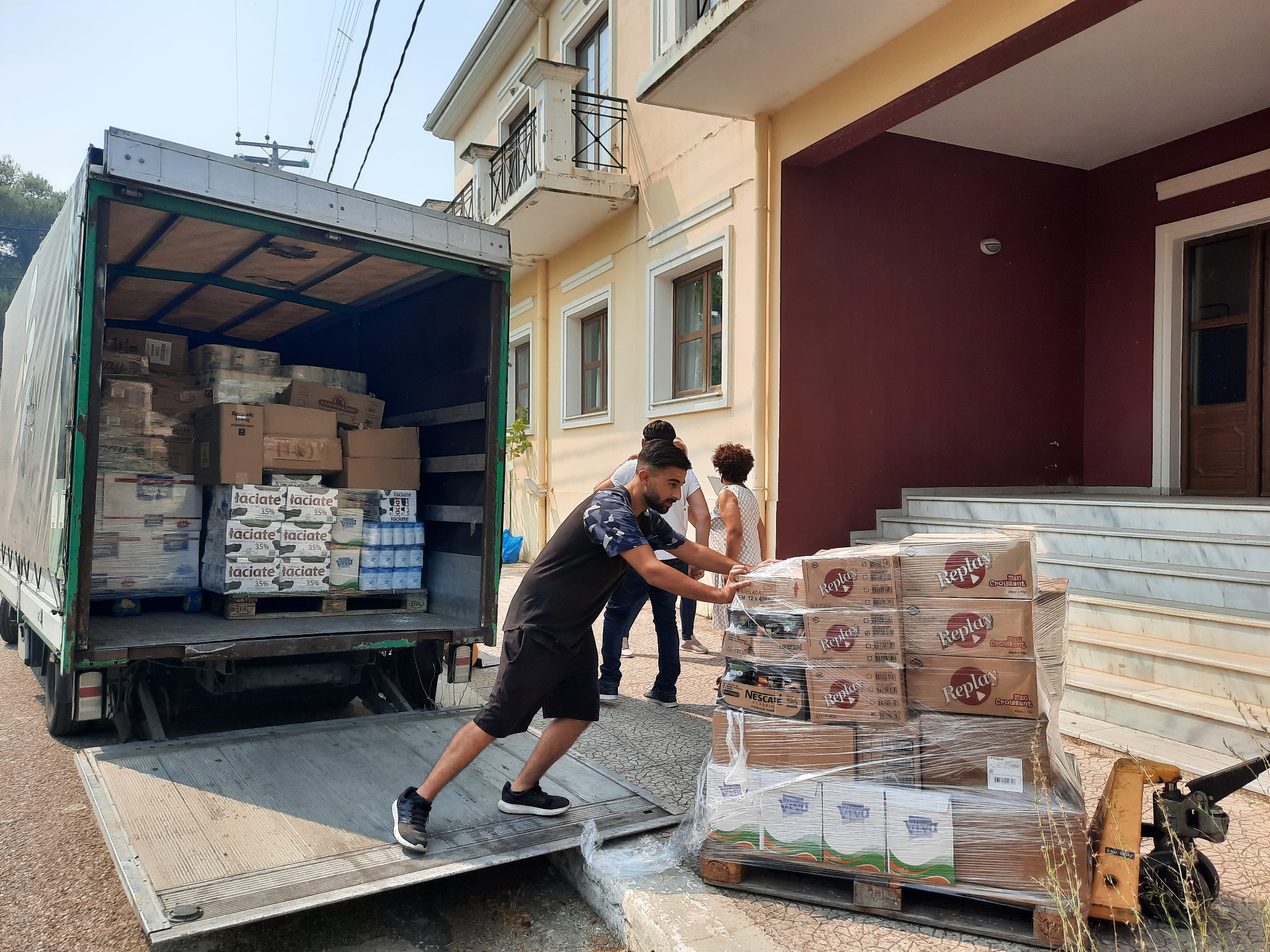 τους μέσα – κάνουν διανομή νερού, γευμάτων και ειδών πρώτης ανάγκης σε όλες τις πληττόμενες