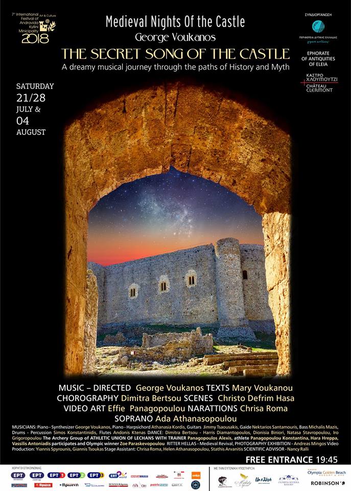 Η Ορχήστρα Σύγχρονης Μουσικής της ΕΡΤ με την διεύθυνση του καταξιωμένου Μαέστρου Γιώργου Αραβίδη ερμηνεύει μοναδικά το «Μυστικό Τραγούδι του Κάστρου». Ο Γιώργος Βούκανος με τις ενορχηστρώσεις και τις συνθέσεις του δημιουργεί ένα μοναδικό ζωντανό Soundtrack μια μουσική παρακαταθήκη για την περιοχή και το Φεστιβάλ του Δήμου Ανδραβίδας – Κυλλήνης που πέρασε τα στενά όρια του Δήμου και ακούγεται σε ολόκληρο τον κόσμο.