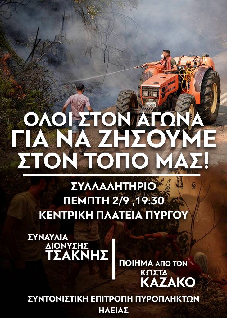 Όλοι και όλες στην συγκέντρωση της Συντονιστικής Επιτροπής Πυρόπληκτων Ν. Ηλείας