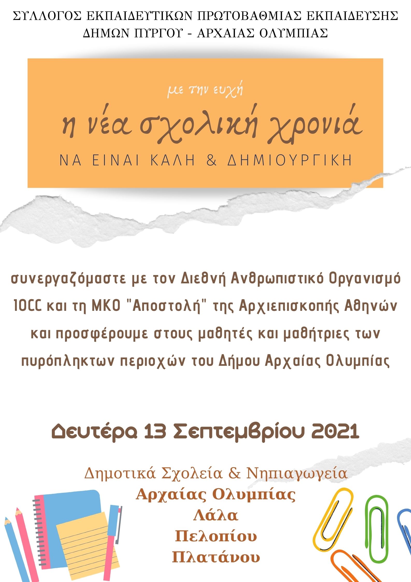 Εκπαίδευσης Δήμων Πύργου και Αρχαίας Ολυμπίας αποφάσισε να συνδράμει