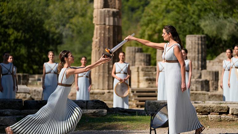 Η Ολυμπιακή Φλόγα άναψε λίγο μετά τις 12:00 το μεσημέρι, από τις ακτίνες του ήλιου στον ναό της Ηρας στην Αρχαία Ολυμπία, λίκνο των αρχαίων Ολυμπιακών Αγώνων.