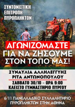 Η Συντονιστική Επιτροπή Πυρόπληκτων από την πρώτη στιγμή συγκρότησης της τον Αύγουστο στην