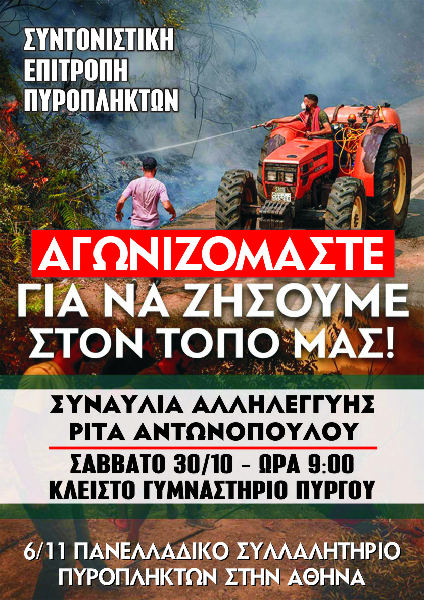 Εδώ και τρεις μήνες η κατάσταση στην περιοχή μας συνεχώς δυσκολεύει. Των πυρκαγιών, ακολούθησαν οι εξευτελιστικές τιμές πώλησης της σταφίδας (με θύματα ακόμη και πυρόπληκτους παραγωγούς), η εκτόξευση του κόστους παραγωγής για τους αγρότες, οι αυξήσεις σε πλατιά λαϊκά είδη κατανάλωσης για το σύνολο των λαϊκών στρωμάτων, όπως αντίστοιχα και με την τιμή του ρεύματος που πήρε την ανηφόρα, οι συγχωνεύσεις τμημάτων σχολείων, ακόμη και σε πυρόπληκτα χωριά (Λάλα, Πελόπιο).