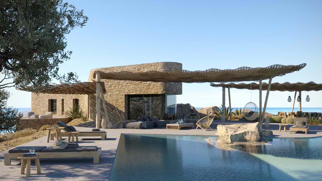Το έργο «Active Materiality – Συγκρότημα Παραθεριστικών Βιλών στο Πόρτο Χέλι» – 3D Απεικόνιση, © Potiropoulos+Partners