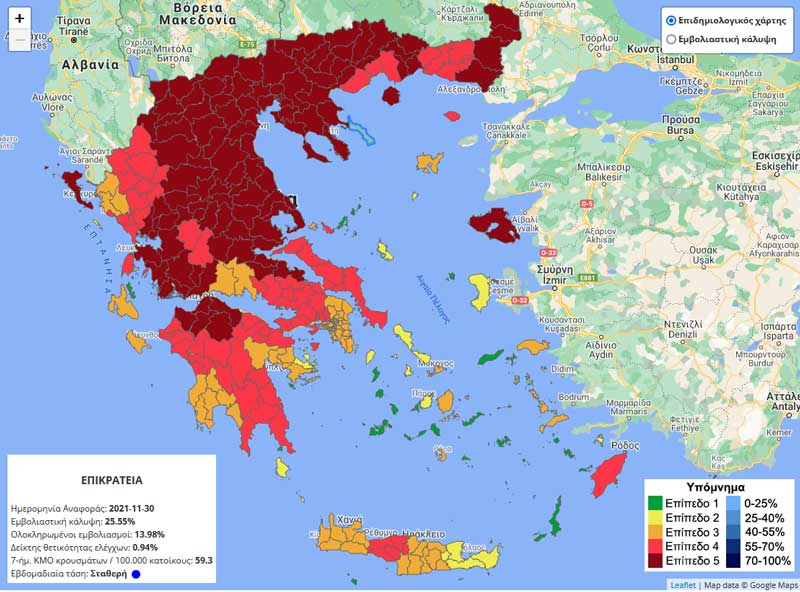 Οι 26 περιοχές της χώρας οι οποίες είναι σε βαθύ κόκκινο (επίπεδο 5):