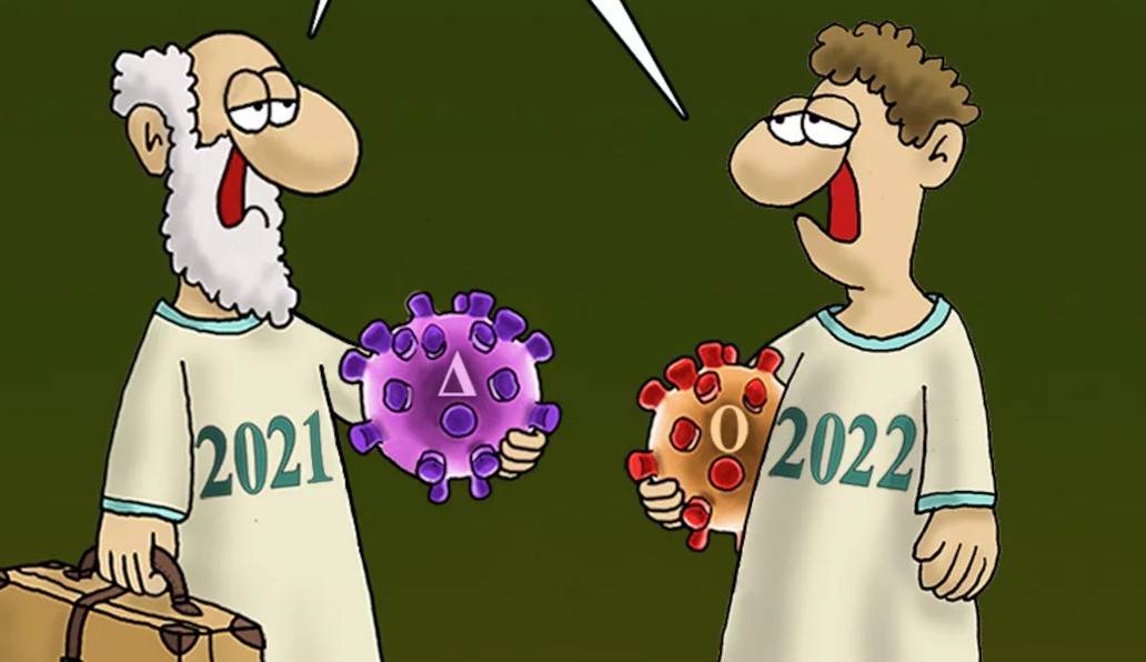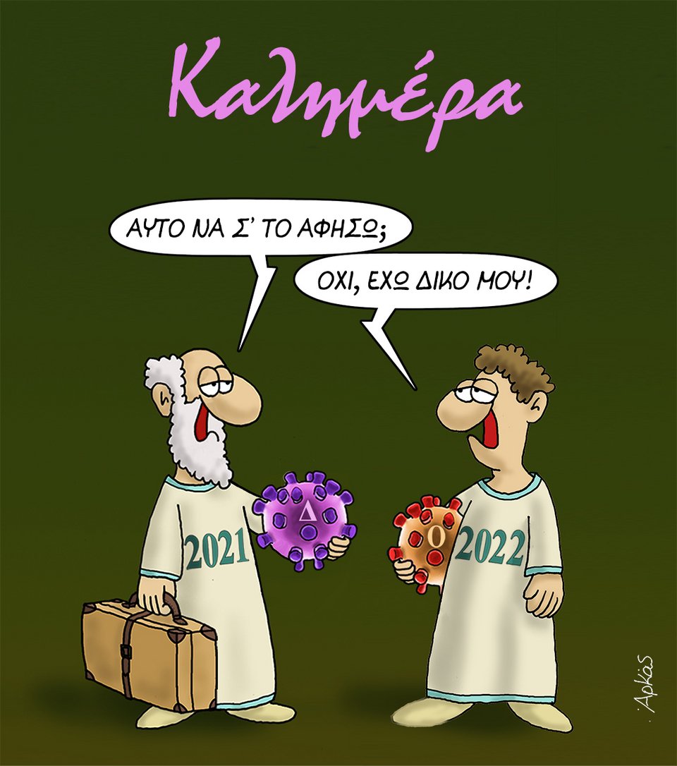 Στις μεταλλάξεις του κορωνοϊού και το 2022 που πλησιάζει, αναφέρεται ο Αρκάς, στα δύο, νέα του σκίτσα.