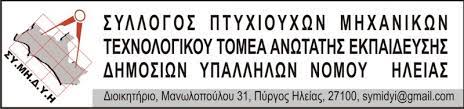Ο Σύλλογος Πτυχιούχων Μηχανικών Τ.Ε. Δημοσίων Υπαλλήλων Νομού Ηλείας εκφράζει