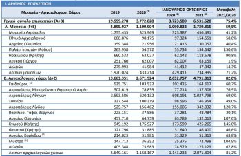 Στους αρχαιολογικούς χώρους το πρώτο δεκάμηνο του 2021, παρατηρείται αύξηση σε σχέση με το ίδιο διάστημα του 2020 κατά 82% στους επισκέπτες και κατά 145,2% στις εισπράξεις. Πρώτος σε επισκεψιμότητα αρχαιολογικός χώρος ήταν η Ακρόπολη και δεύτερη η Κνωσός, ενώ πρώτο σε επισκεψιμότητα μουσείο ήταν το μουσείο της Ακρόπολης και δεύτερο το Εθνικό Αρχαιολογικό Μουσείο στην Αθήνα.