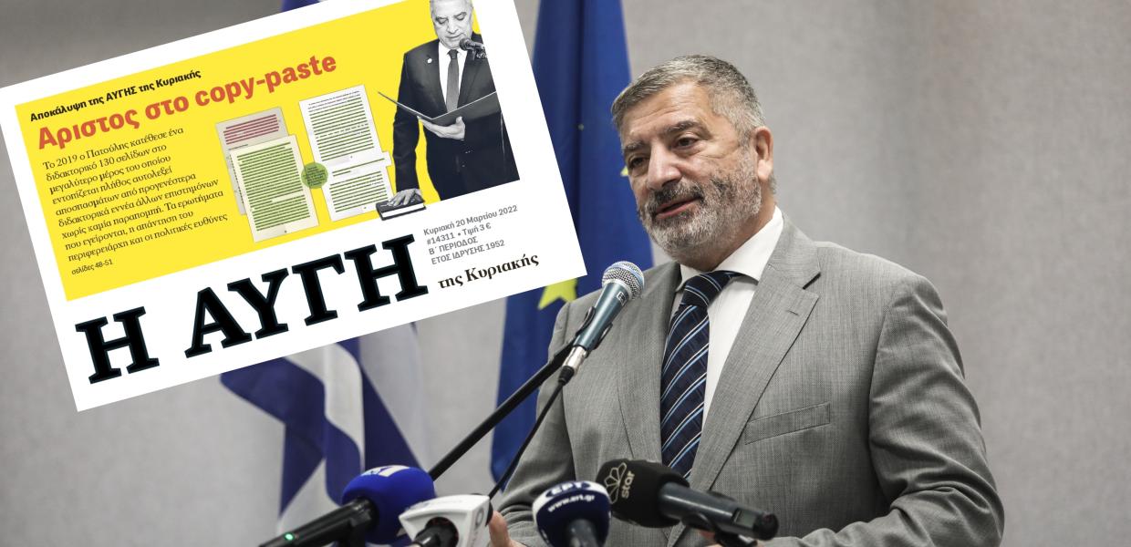 Άγρια κόντρα έφερε το δημοσίευμα της εφημερίδας Αυγής, «Άριστος στο copy-paste αποδεικνύεται ο Γιώργος Πατούλης», αναφέροντας ότι ο περιφερειάρχης Αττικής κατέθεσε διδακτορικό με πλήθος αυτολεξεί αποσπασμάτων από προγενέστερα διδακτορικά.