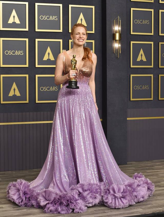 Η μεγάλη νικήτρια της χθεσινής βραδιάς η Jessica Chastain τράβηξε πάνω της όλα τα βλέμματα με ένα εντυπωσιακό ροζ χρυσό φόρεμα που κατέληγε σε ombre λεβάντα. Η τουαλέτα ήταν φτιαγμ΄νη από παγιέτες και τόνιζε τη μέση της. Η 45χρονη σταρ έκανε ακόμα πιο λαμπερό το όλο της λουκ με διαμαντένια σκουλαρίκια, βραχιόλι και δαχτυλίδια.