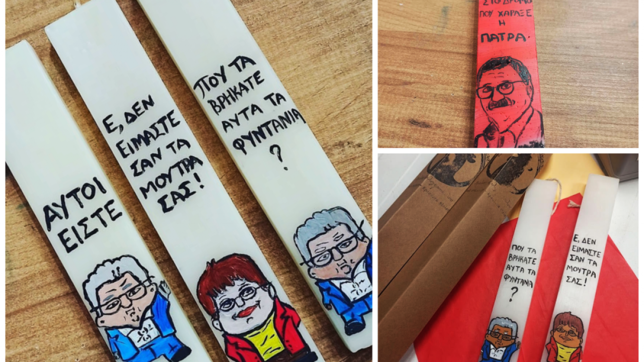 Ήταν δίκαιο, έγινε πράξη. Ένα καλλιτεχνικό εργαστήριο δημιούργησε αυτό που όσο ξέρουμε είναι οι πρώτες λαμπάδες με τον Δημήτρη Κουτσούμπα στην Ελλάδα. Για να είμαστε ακριβείς, δεν δημιούργησε μόνο λαμπάδες με τον ΓΓ του ΚΚΕ, αλλά και με τους Κυριάκο Μητσοτάκη, Αλέκα Παπαρήγα και Κώστα Πελετίδη.