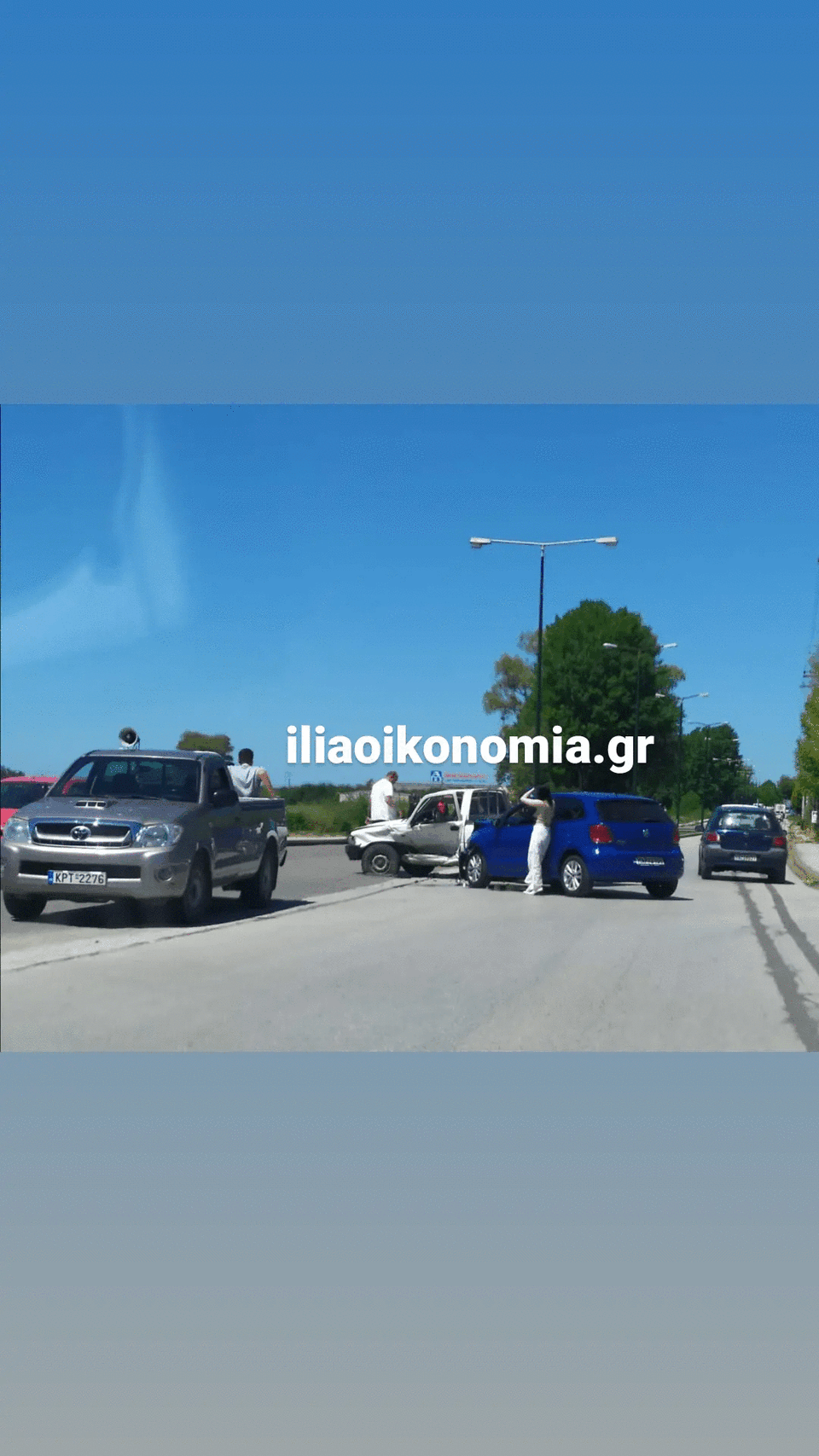Τροχαίο ατύχημα συνέβη πριν λίγα λεπτά μέσα στην πολη του Πύργου στην οδό Πατρών στο ύψος του γηπέδου. Δυο αυτοκίνητα το ένα αγροτικό το άλλο ιχ ,συγκρούστηκαν προφανώς την στιγμή που το ένα έβγαινε από στενό προσπαθώντας να διασχίσει την Πατρών για να στρίψει και να μπει στο άλλο ρεύμα με κατεύθυνση προς το κέντρο.