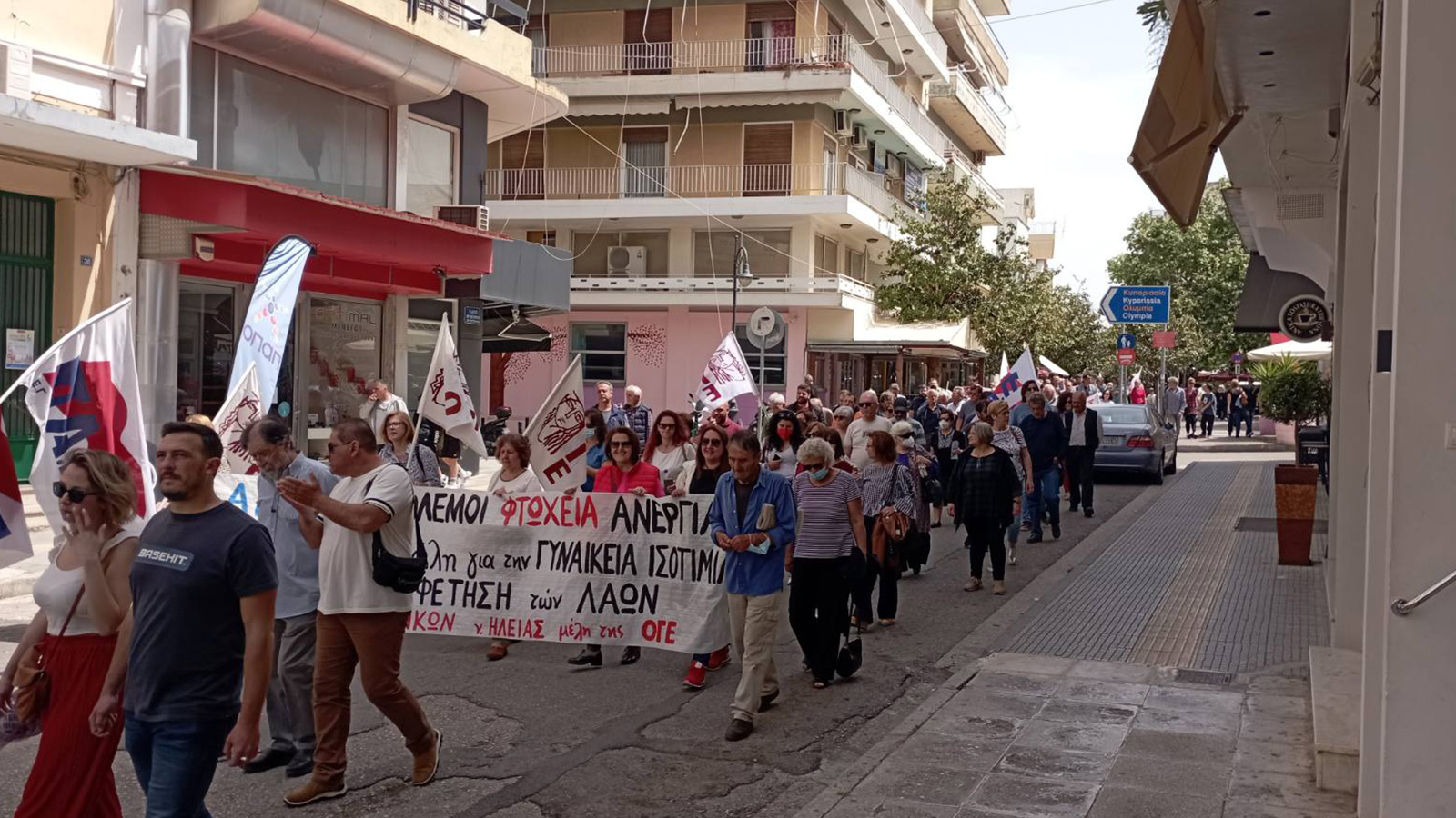 Μαζική ήταν και η απεργιακή συγκέντρωση στον Πύργο της Ηλείας. Η κεντρική πλατεία γέμισε με απεργούς εργαζόμενους και λαϊκές οικογένειες, ενώ στο πλευρό τους βρέθηκε και η Ομοσπονδία Αγροτικών Συλλόγων του νομού.