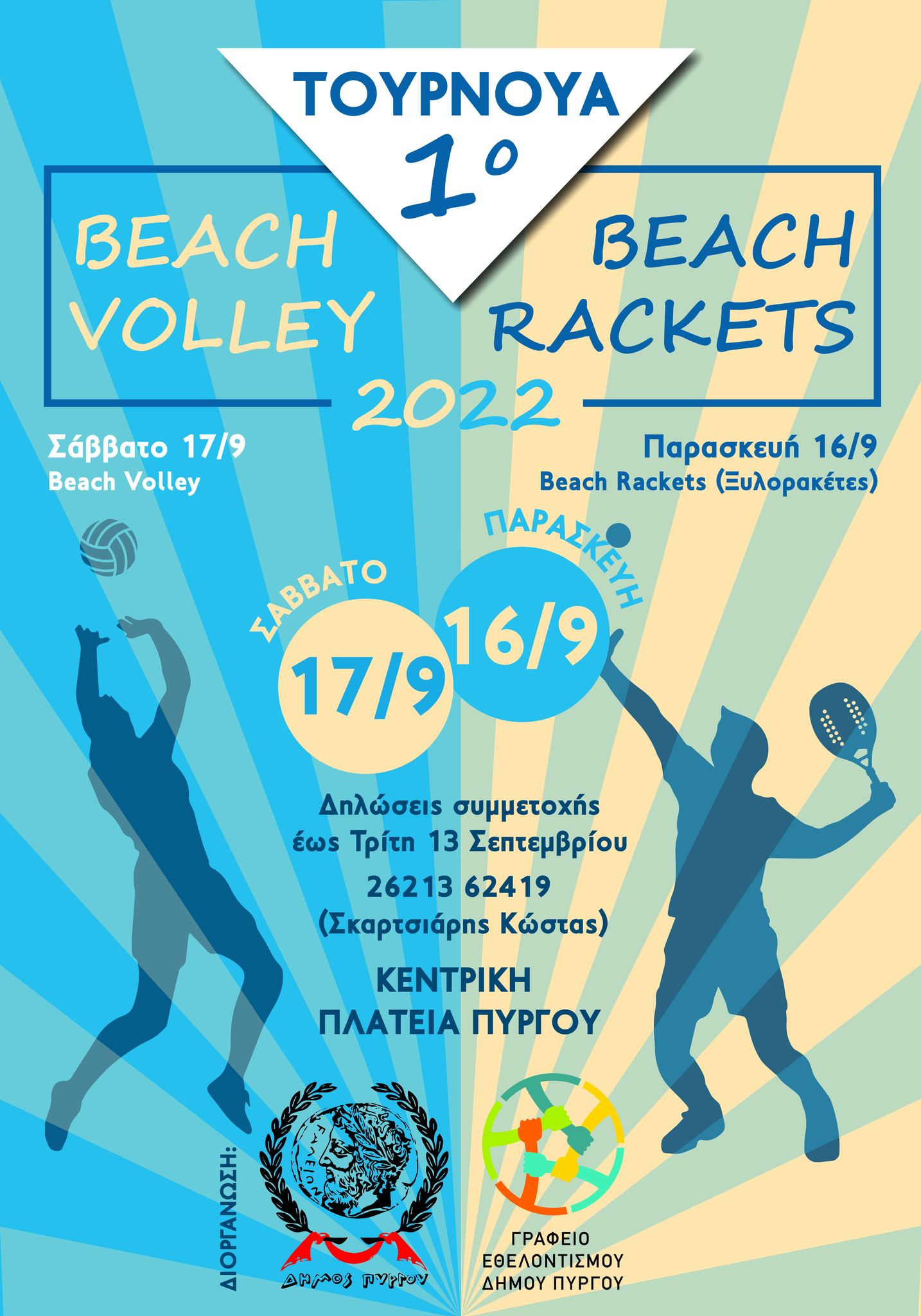 Το 1ο BEACH VOLLEY το Σάββατο 17/9, στην κεντρική πλατεία Πύργου, καθώς και το 1ο beach rackets την Παρασκευή στον ίδιο χώρο, ήταν το αντικείμενο της συνέντευξης Τύπου που παραχώρησε ο δήμαρχος Πύργου Παναγιώτης Αντωνακόπουλος, παρουσία του αντιδημάρχου Αθλητισμού Γιάννη Αργυρόπουλου και του προέδρου του Ομίλου Ρακετιστών Κουρούτας Αμαλιάδας Γιώργου Νικολόπουλου.