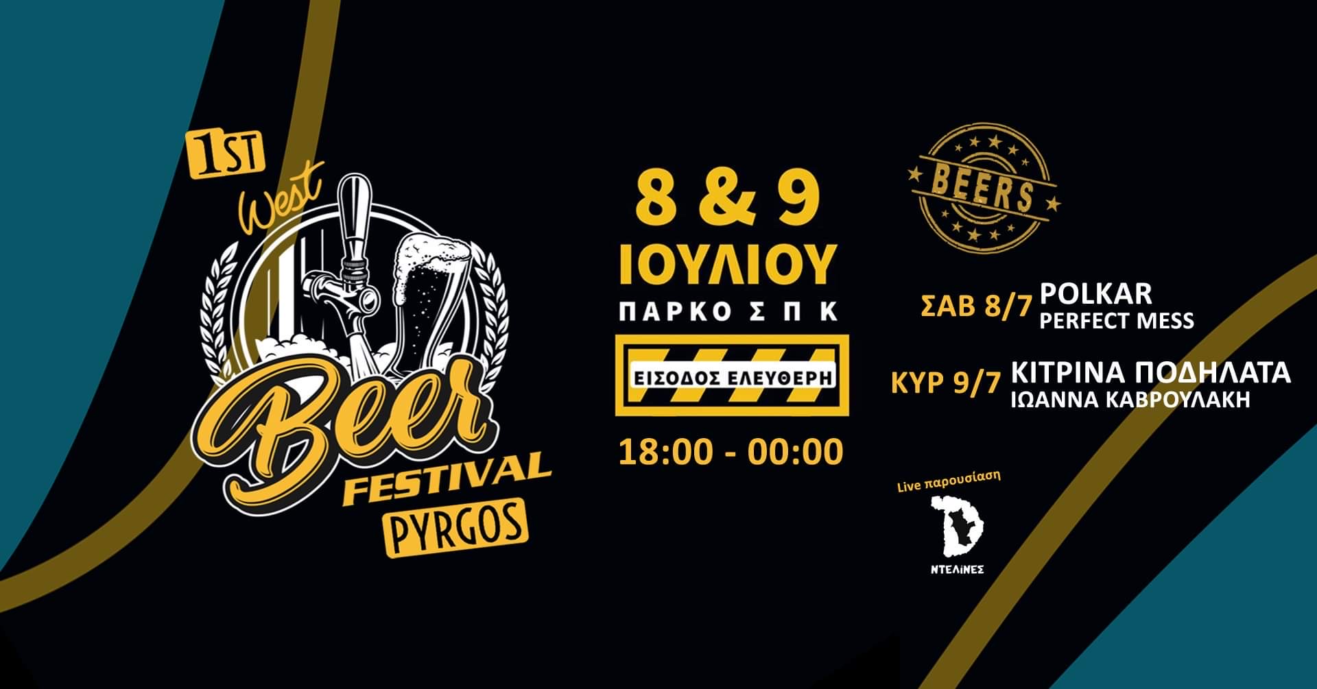Με έντονο ενδιαφέρον αναμένεται το 1 ο WEST BEER FESTIVAL, που θα διεξαχθεί στις 8 και 9 Ιουλίου στο Πάρκο ΣΠΚ Πύργου. Μια γιορτή που στοχεύει να φιλοξενήσει 1000 επισκέπτες κάθε μέρα