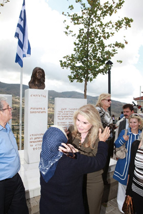 Η κ. Βαρδινογιάννη, πριν φτάσει στο χωριό, έκανε μια μικρή στάση στον τόπο της θυσίας, για να αποτίσει φόρο τιμής στους νεκρούς.