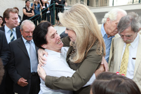 Η κ. Βαρδινογιάννη, με την άφιξή της αγκάλιασε τους κατοίκους που την υποδέχτηκαν και ειδικά τους ηλικιωμένους.