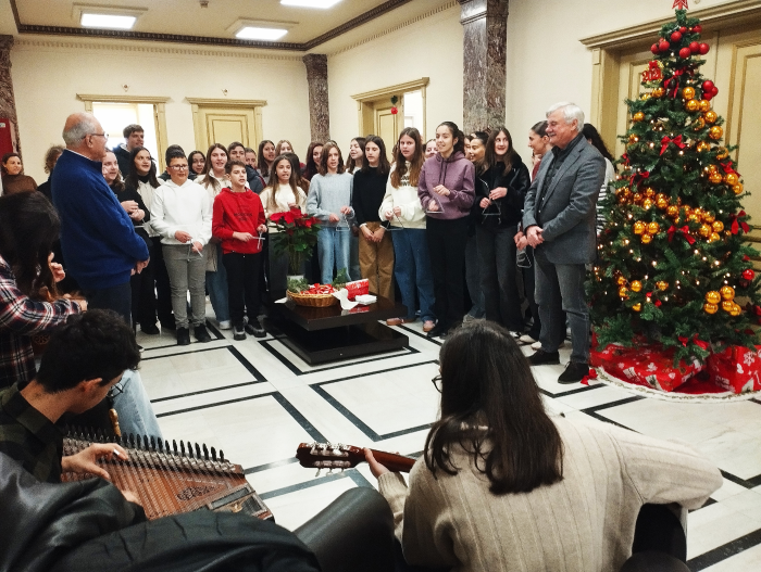 Τους μαθητές και τις μαθήτριες υποδέχτηκε εγκάρδια ο Δήμαρχος Πύργου, κ. Στάθης Καννής. Οι μαθητές/τριες των δύο σχολείων έψαλαν, με τη συνοδεία της ορχήστρας, και υπό τη διεύθυνση της εκπαιδευτικού μουσικής κ. Κωνσταντίνας Σακκά–Κυρίτση, παραδοσιακά κάλαντα από διάφορες περιοχές της Ελλάδας και τραγούδησαν Χριστουγεννιάτικα τραγούδια στον Δήμαρχο Πύργου, στον Αντιδήμαρχο Τεχνικών Υπηρεσιών κ. Παναγόπουλο, στους συνεργάτες τους και στο προσωπικό του Δήμου Πύργου. Οι μαθητές/τριες δημιούργησαν μια όμορφη εορταστική ατμόσφαιρα, εν αναμονή των Χριστουγέννων, μεταδίδοντας το μήνυμα για αγάπη, αλληλεγγύη, ελπίδα και αισιοδοξία. Ο κ. Καννής ευχαρίστησε τους μαθητές και τις μαθήτριες και τους ευχήθηκε καλές γιορτές με υγεία, καλή πρόοδο και επιτυχία στους στόχους τους.