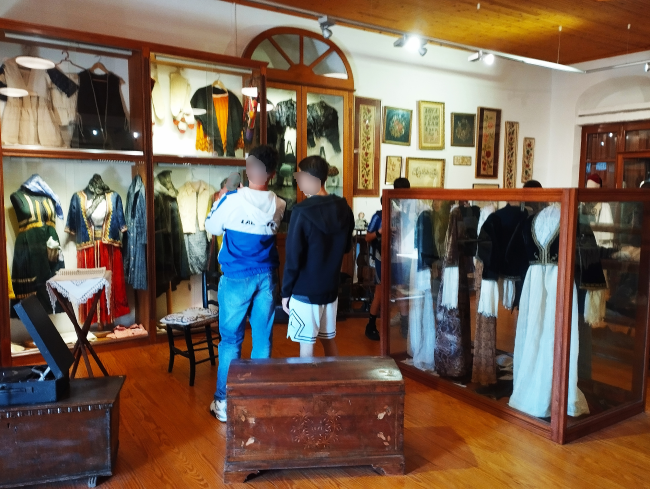 Η επίσκεψη ξεκίνησε με ξενάγηση στο Λαογραφικό Μουσείο της Ανδρίτσαινας, που στεγάζεται σε παραδοσιακό αρχοντικό και παρουσιάζει αντικείμενα της καθημερινής ζωής των περασμένων αιώνων. Οικιακά σκεύη, εργαλεία αγροτικής και κτηνοτροφικής εργασίας, υφαντά, παραδοσιακές φορεσιές και παλιές φωτογραφίες βοήθησαν τους μαθητές/τριες να καταλάβουν πώς ζούσαν οι άνθρωποι τότε σε ένα ορεινό χωριό του νομού μας, νιώθοντας συγκίνηση και θαυμασμό για τον τρόπο που κατόρθωναν να δημιουργούν και να επιβιώνουν.