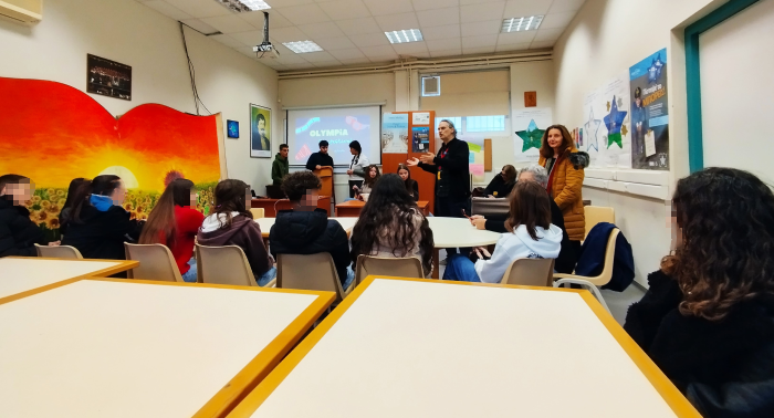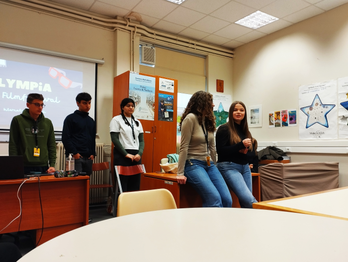 Μαθητές και μαθήτριες της Γ’ τάξης του σχολείου μας είχαν την ευκαιρία να συναντήσουν τα μέλη της επιτροπής και να συνομιλήσουν για την εμπειρία τους να είναι μέλη κριτικών επιτροπών, να συμμετέχουν σε διεθνή φεστιβάλ κινηματογράφου για παιδιά και νέους, καθώς και την εμπειρία τους από το φεστιβάλ Ολυμπίας.