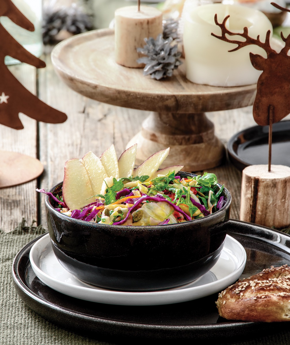 Πριν μπούμε στην κουζίνα για να αρχίσουμε να πλένουμε και να κόβουμε τα λαχανικά μας, μπορούμε να αναλογιστούμε ποιο είναι αυτό το έξτρα υλικό που θα μπορούσε να μας δώσει έμπνευση για μια σούπερ θρεπτική και αβανταδόρικη φθινοπωρινή σαλάτα. Και τότε, ρίχνοντας μια ματιά στη φρουτιέρα φρενάρει το βλέμμα μας στα μήλα.