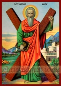 Ο Απόστολος Ανδρέας ήταν ο πρώτος μαθητής που κάλεσε ο Χριστός, γι’ αυτό και ονομάστηκε Πρωτόκλητος. Καταγόταν από τη Βησθαηδά της Γαλιλαίας και ήταν αδελφός του Αποστόλου Πέτρου. Δίδαξε το λόγο του Ιησού στη Βιθυνία του Ευξείνου Πόντου, στη Θράκη, στη Μακεδονία, στην Ήπειρο και στην Πελοπόννησο. Στην Πάτρα ο Απόστολος Ανδρέας επιτέλεσε πολλά θαύματα, θεραπεύοντας πολλούς ασθενείς, με αποτέλεσμα να πιστέψουν στο Χριστό η σύζυγος του ανθύπατου Αιγεάτη, Μαξιμίλα, καθώς και ο αδελφός του Στρατοκλής.Όταν το πληροφορήθηκε ο ανθύπατος, συνέλαβε τον Απόστολο Ανδρέα και διέταξε να τον σταυρώσουν. Ο Απόστολος, μη νιώθοντας άξιος να πεθάνει με τον τρόπο που πέθανε ο Ιησούς, ζήτησε ο σταυρός να έχει σχήμα Χ.