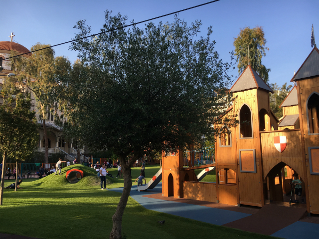 Η παιδική χαρά στην πλατεία Μακεδονίας στη Γλυφάδα είναι ένα ζωντανό, πολύχρωμο όνειρο που θα κάνει βάλει τα παιδιά σε έναν ολοκαινούργιο, μαγικό κόσμο.