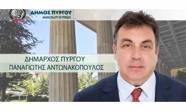 Αντωνακοπουλος Παναγιωτης, δημαρχος. ΠΥΡΓΟΥ ΗΛΕΙΑΣ”.
