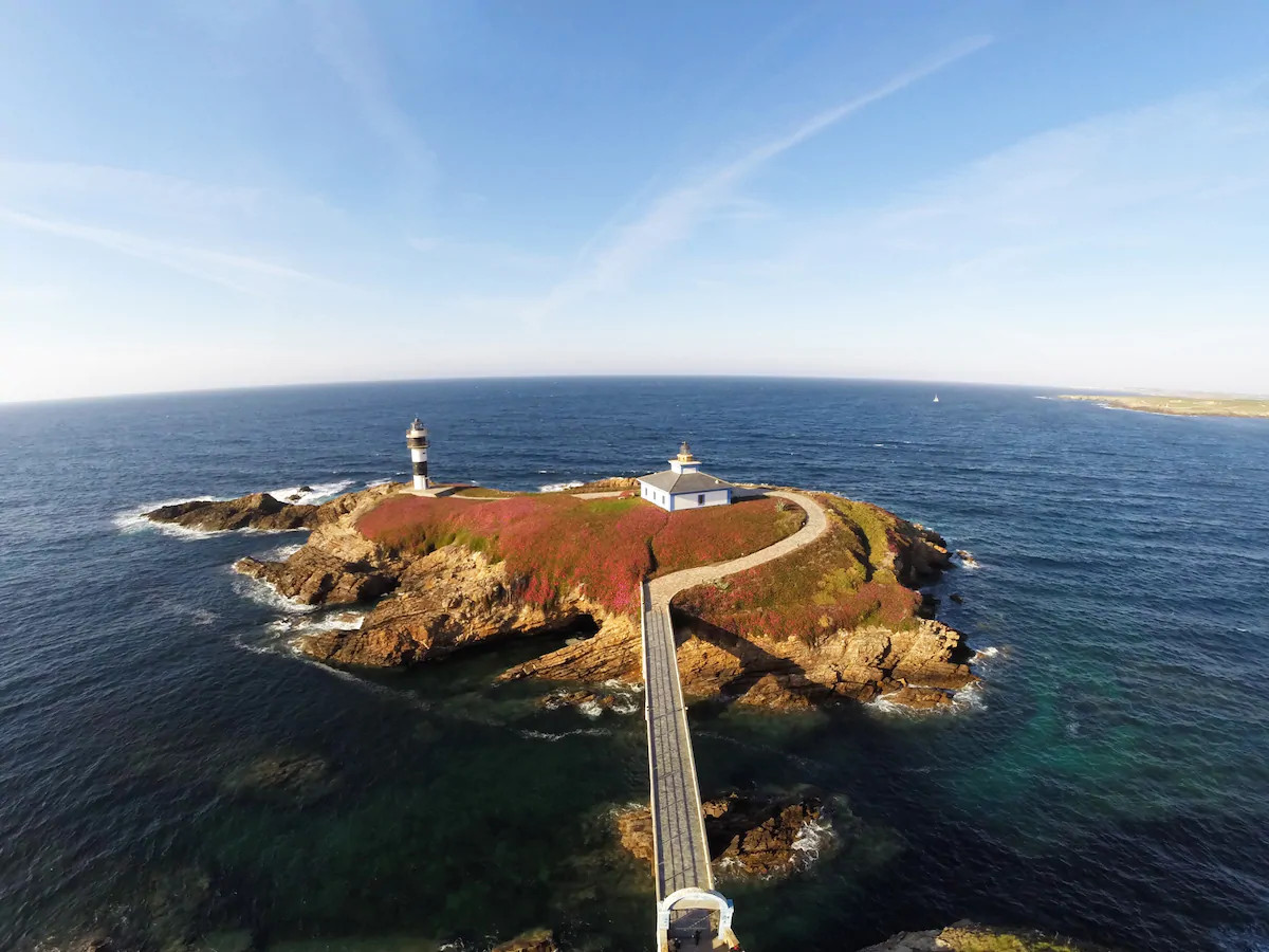 Πολύ κοντά στις ακτές της Γαλικίας βρίσκεται αυτό το μικρό ιδιωτικό νησί που συνδέεται με τη στεριά με μία γέφυρα. Θα διανυκτερεύσετε σε δύο φάρους που έχουν μετατραπεί σε μοντέρνα διαμερίσματα.