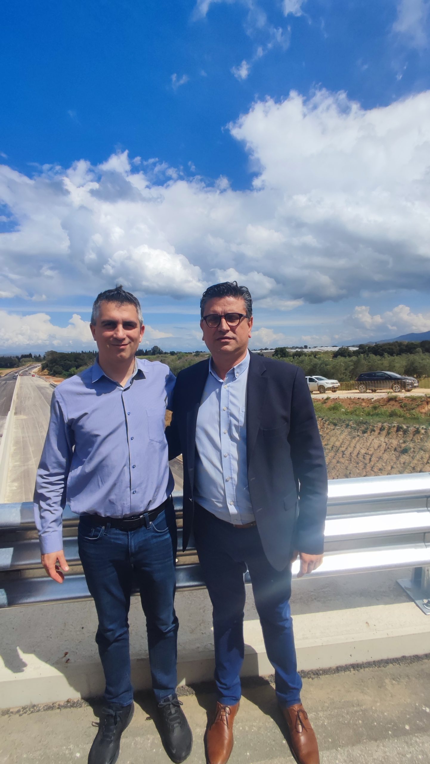 κ. Χρίστο Δήμα, καθώς και τον υφυπουργό κ. Νικόλαο Ταχιάο στο εργοτάξιο του Άκτορα στον υπό κατασκευή αυτοκινητόδρομο Πάτρα-Πύργος.