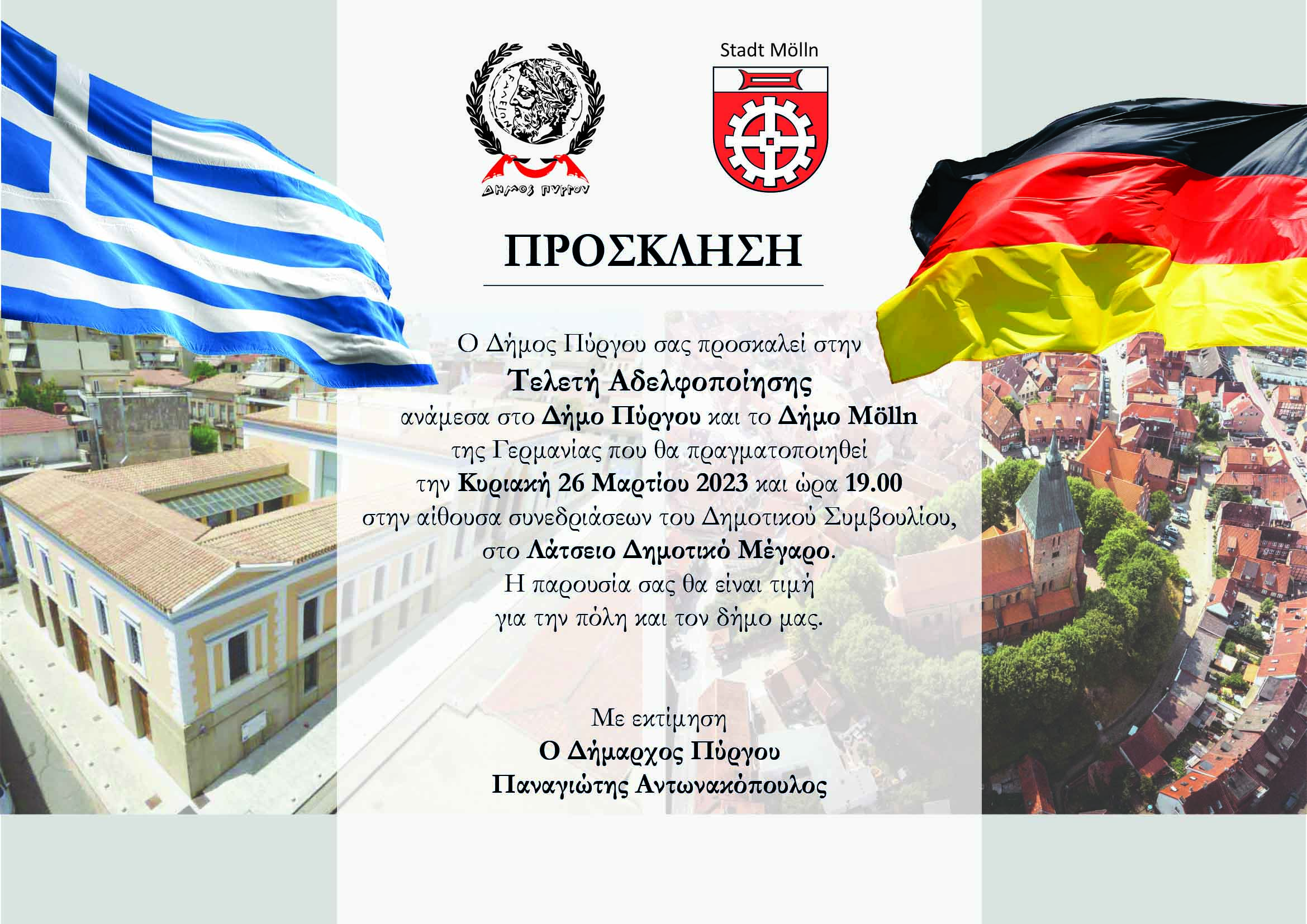 Αδελφοποίηση Δήμου Πύργου με τη Γερμανική πόλη Mölln – Δεσμοί φιλίας και συνεργασίας