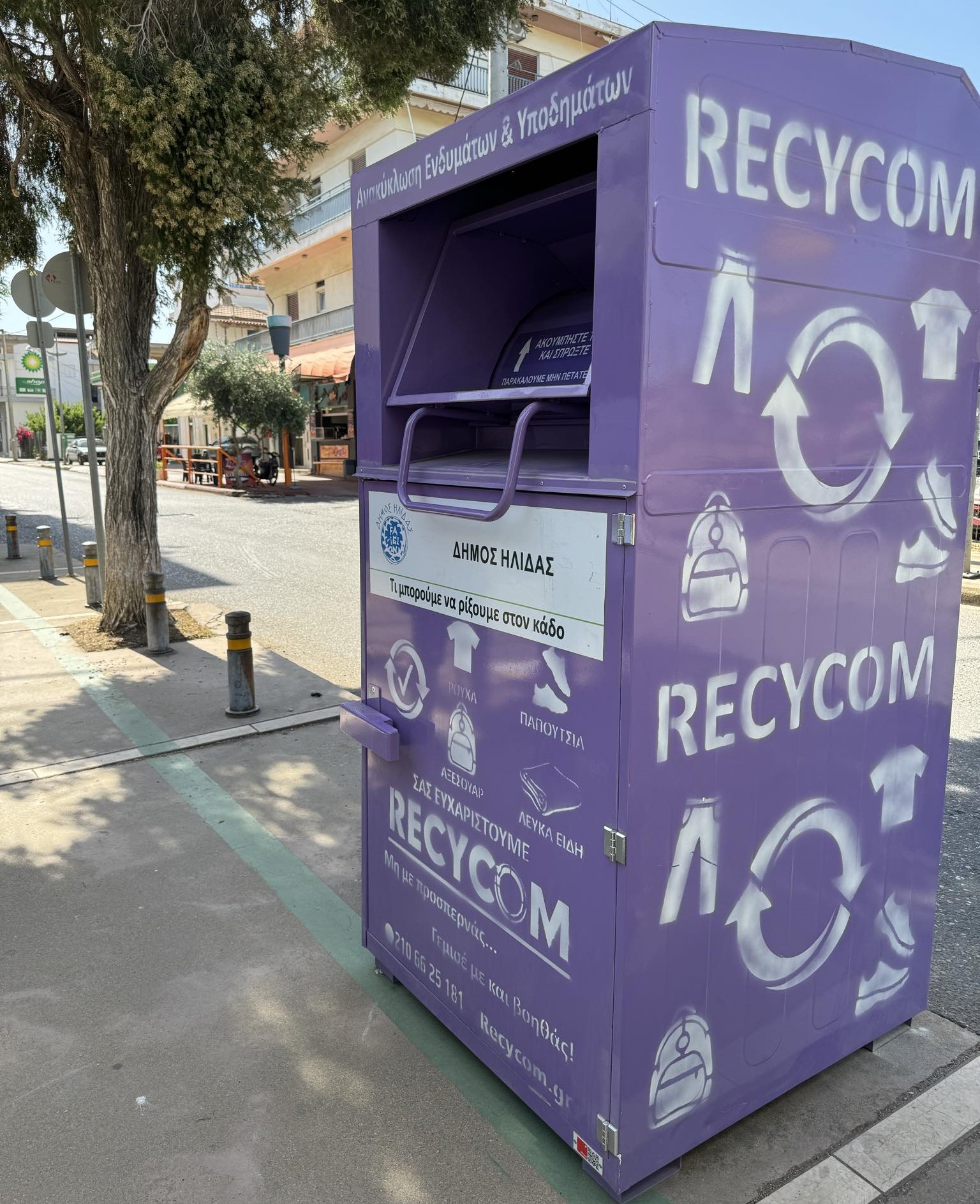 Ο Δήμος Ήλιδας με σκοπό την βελτίωση της ποιότητας ζωής των δημοτών, την προστασία του περιβάλλοντος, αλλά και την προώθηση της ανακύκλωσης, προχώρησε στην εγκατάσταση των πρώτων 10 ειδικών μωβ κάδων σε συγκεκριμένα σημεία της Αμαλιάδας, για την ανακύκλωση ρουχισμού και υποδημάτων.