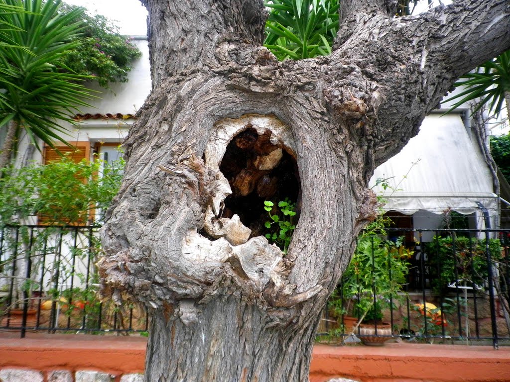 αυτοσχέδιο πατάρι σε κορμό δένδρου.