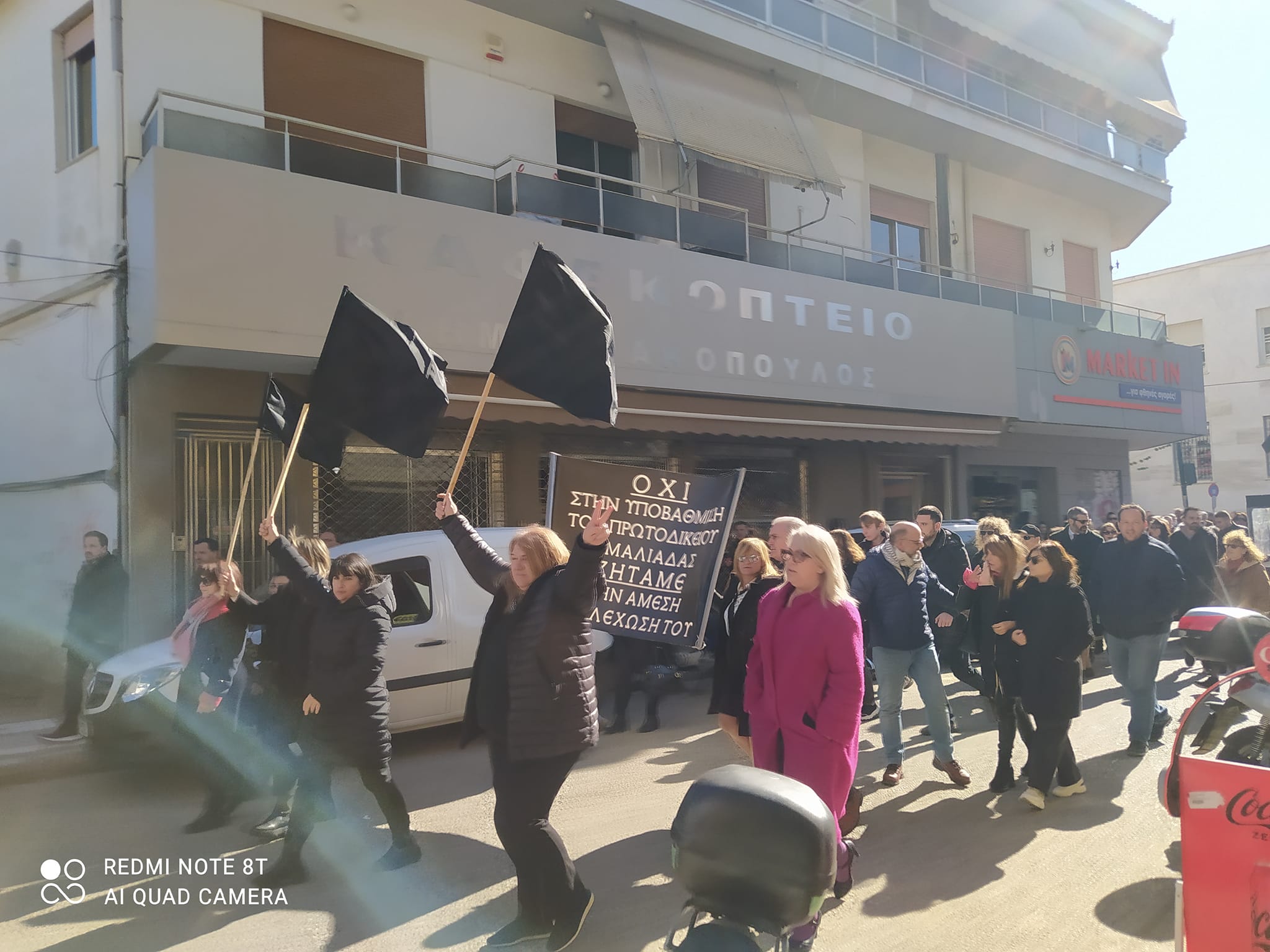 Μόλις ολοκληρώθηκαν οι τοποθετήσεις όλων των ομιλητών, ακολούθησε πορεία στο κέντρο της πόλης, με κατάληξη την κεντρική πλατεία του Αγίου Αθανασίου, κατά τη διάρκεια της οποίας οι συμετέχοντας φώναζαν συνθήματα και κρατούσαν σημαίες και πανό. Τόσο η συγκέντρωση, όσο και η πορεία ενώθηκαν με τα τρακτέρ και τα αγροτικά μηχανήματα αγροτών της Ηλείας και κατέληξαν στον κόμβο της Μαραθιάς για να συμμετάσχουν στην προγραμματισμένη αγροτική κινητοποίηση.