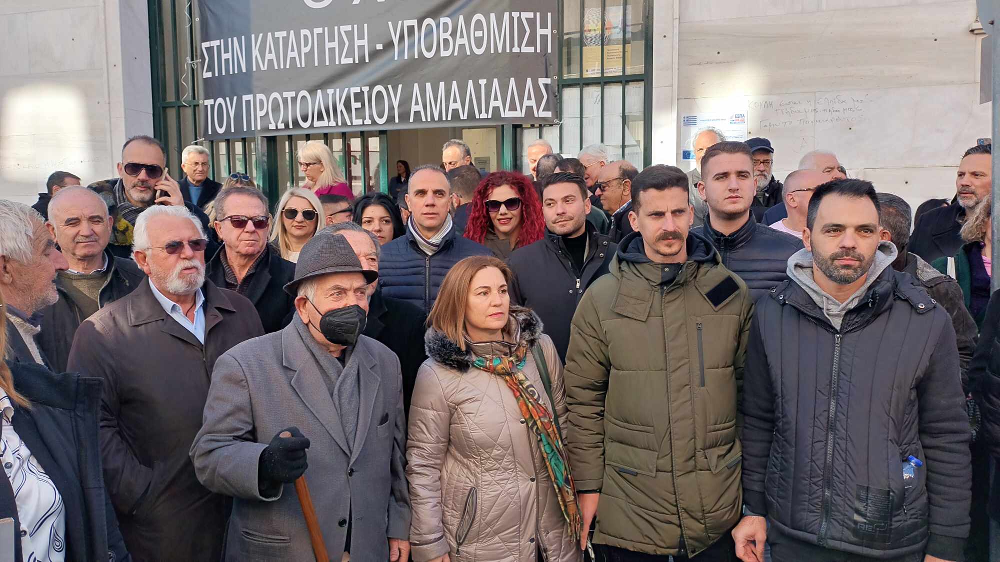 Εκατοντάδες πολίτες ανταποκρίθηκαν στο κάλεσμα του Δικηγορικού Συλλόγου της πόλης και της δημοτικής αρχής, προσερχόμενοι από νωρίς έξω από τα δικαστήρια της Αμαλιάδας, για να ενώσουν τις φωνές τους και να εκφράσουν με ηχηρό τρόπο την αντίθεσή τους στο σχέδιο νόμου που ετοιμάζει το Υπουργείο Δικαιοσύνης για την αναδιάρθρωση του δικαστικού χάρτη με συγχώνευση πρωτοδικείων και ειρηνοδικείων.