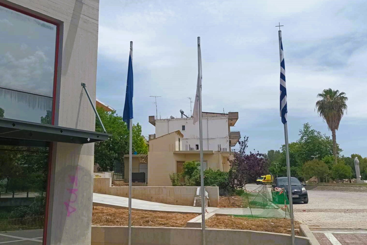 τοποθετήθηκαν οι ιστοί και οι σημαίες που ενδείκνυνται για χώρους που φιλοξενούν