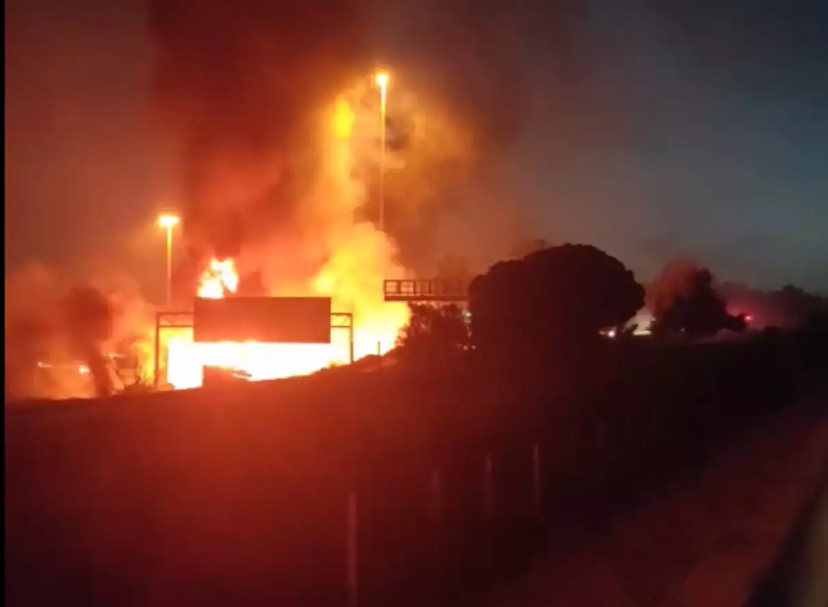 Πανικός επικρατεί στην Εθνική Οδό Αθηνών – Κορίνθου στο σημείο της γέφυρα του Ισθμού μετά από ανατροπή βυτιοφόρου και φωτιά που προκλήθηκε μετά από έκρηξη.