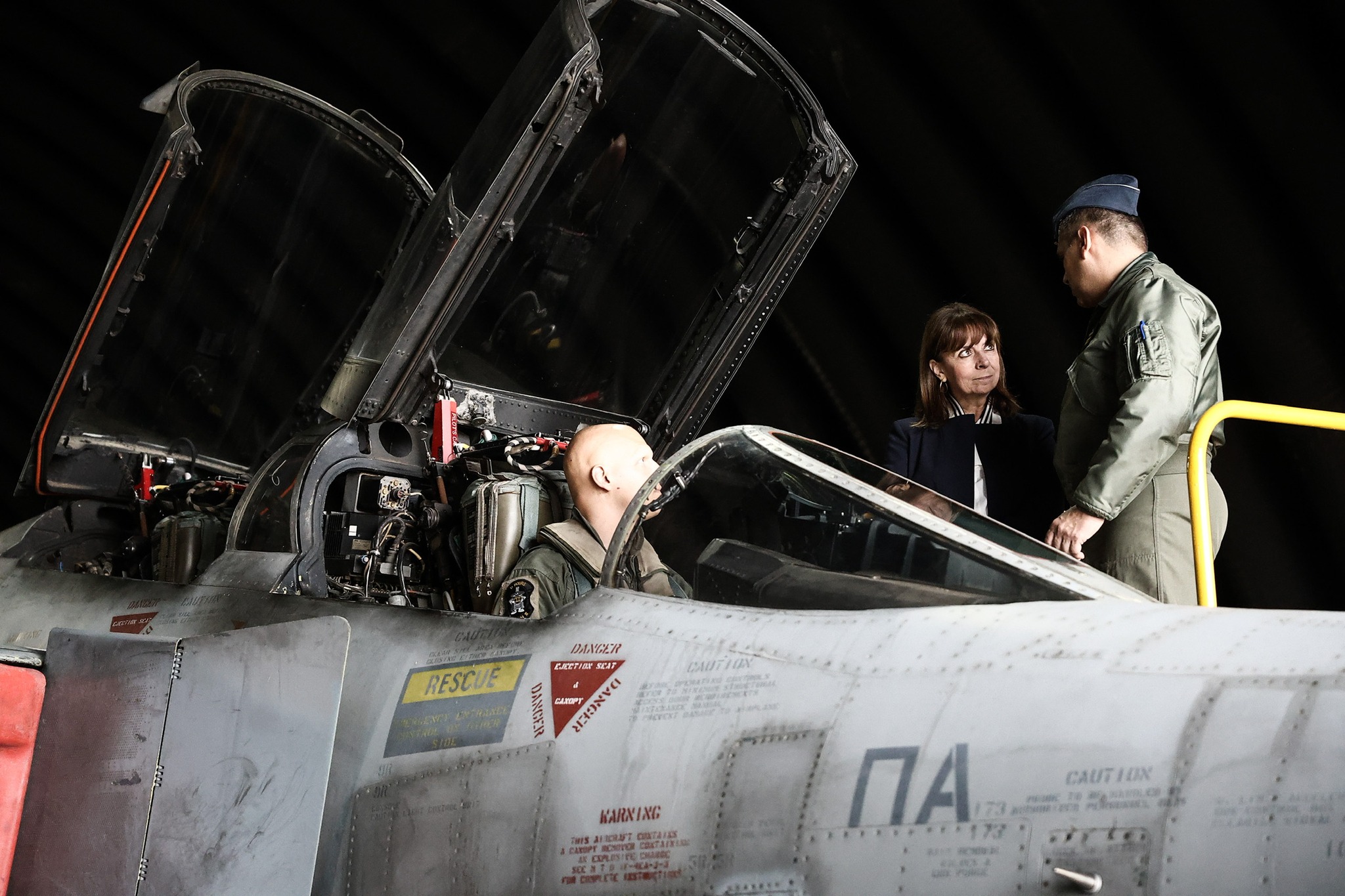 ¨Επισκέφθηκα την 338 Μοίρα της 117 Πτέρυγας Μάχης στην Ανδραβίδα για να τιμήσω, εκ μέρους όλου του ελληνικού λαού, τη μνήμη του Σμηναγού Ευστάθιου Τσιτλακίδη και του Υποσμηναγού Μάριου-Μιχαήλ Τουρούτσικα, οι οποίοι έχασαν τη ζωή τους τον περασμένο Ιανουάριο στο Ιόνιο, κατά τη διάρκεια εκπαιδευτικής πτήσης. Θέλησα να βρεθώ κοντά στους συναδέλφους τους που εκπαιδεύονται νυχθημερόν, σε ρεαλιστικές συνθήκες πολεμικής εμπλοκής, ξεπερνώντας πολλές φορές τα όριά τους. Και να εκφράσω την ευγνωμοσύνη όλων μας στους πιλότους μας που, ατρόμητοι μπροστά στον κίνδυνο, υπερασπίζονται την πατρίδα με αφοσίωση, ευσυνειδησία και αποτελεσματικότητα. Οι γυναίκες και οι άντρες της Πολεμικής Αεροπορίας μας δίνουν ένα λαμπρό παράδειγμα προσήλωσης στην αποστολή τους και μας κάνουν περήφανους.¨
