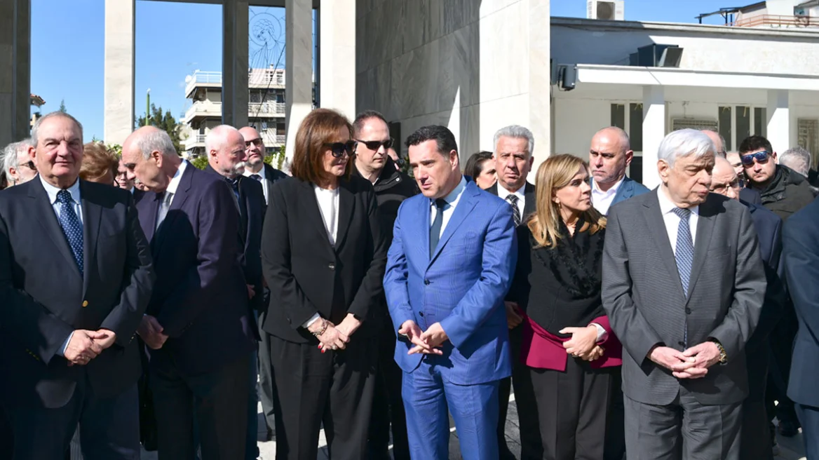 Στο Α’ Νεκροταφείο βρέθηκαν , μεταξύ άλλων, οι πρώην πρωθυπουργοί Κώστας Καραμανλής, Λουκάς Παπαδήμος και Παναγιώτης Πικραμμένος, ο πρόεδρος της Βουλής, Νικήτας Κακλαμάνης, ο πρώην Πρόεδρος της Δημοκρατίας, Προκόπης Παυλόπουλος, ο αντιπρόεδρος της κυβέρνησης Κωστής Χατζήδάκης, ο υπουργός Μετανάστευσης και Ασύλου, Θάνος Πλεύρης, η υπουργός Εργασίας, Νίκη Κεραμέως, ο υπουργός Ναυτιλίας Βασίλης Κικίλιας, ο υπουργός Υγείας Άδωνις Γεωργιάδης, ο γραμματέας της Πολιτικής Επιτροπής της ΝΔ, Κώστας Σκρέκας, ο ευρωβουλευτής της ΝΔ, Ευάγγελος Μεϊμαράκης, η Ντόρα Μπακογιάννη, ο διοικητής της Τράπεζας της Ελλάδος, Γιάννης Στουρνάρας, η Σοφία Βούλτεψη, οι πρώην υπουργοί Μιλτιάδης Βαρβιτσιώτης, Φάνη Πάλλη-Πετραλιά, Γιώργος Αλογοσκούφης και Γιάννης Βαληνάκης.