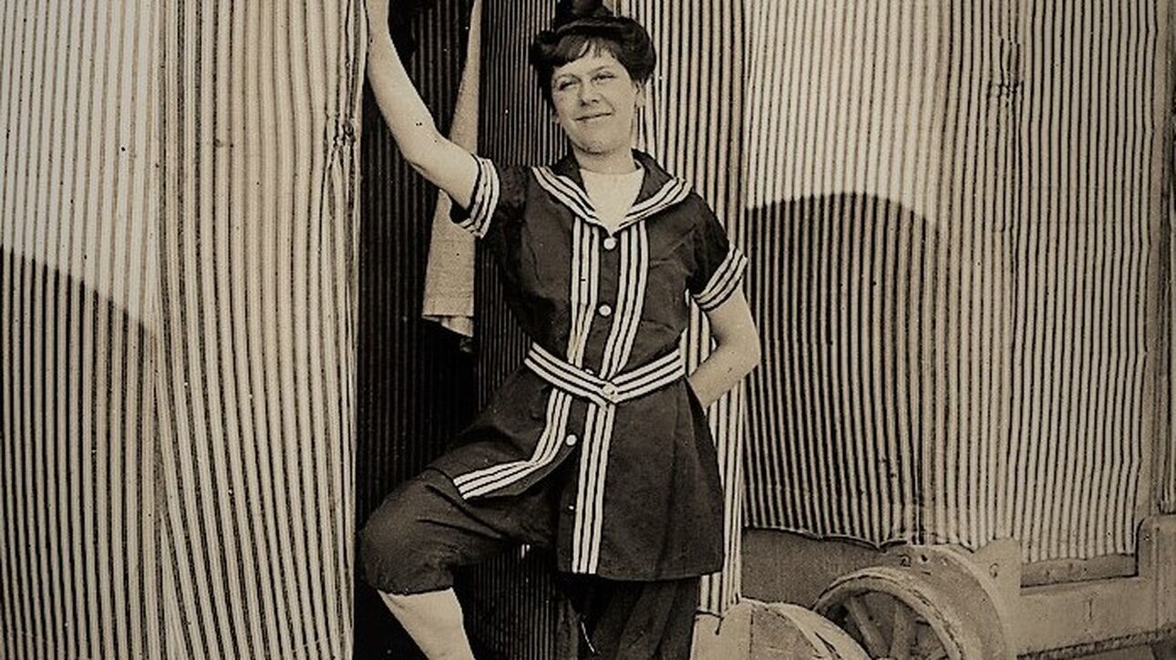 Πάντως, η αμφίεση που ορίζεται ως μόνη επιτρεπτέα για τη θάλασσα είναι μία τραγωδία. Το λουτρικό ένδυμα για τις γυναίκες είναι ριγέ, πορτοκαλί, κόκκινο ή μπλε, πρέπει να καλύπτει ώμους και λαιμό και να συνοδεύεται από μαύρη κάλτσα, στολισμένη με λευκές κορδέλες, που περνούν από πάνω χιαστί ώστε να την κρατούν καλά στηριγμένη στο πόδι μήπως και φανεί το σκανδαλιστικό λευκό της σάρκας! Ως εκ τούτου, οι γυναίκες αρκούνται σε ένα πλατσούρισμα στα ρηχά, καθώς το βάρος της βρεγμένης λουτρικής τουαλέτας τους δεν επιτρέπει όχι να κολυμπήσουν, αλλά ούτε και να επιπλεύσουν στην επιφάνεια της θάλασσας.