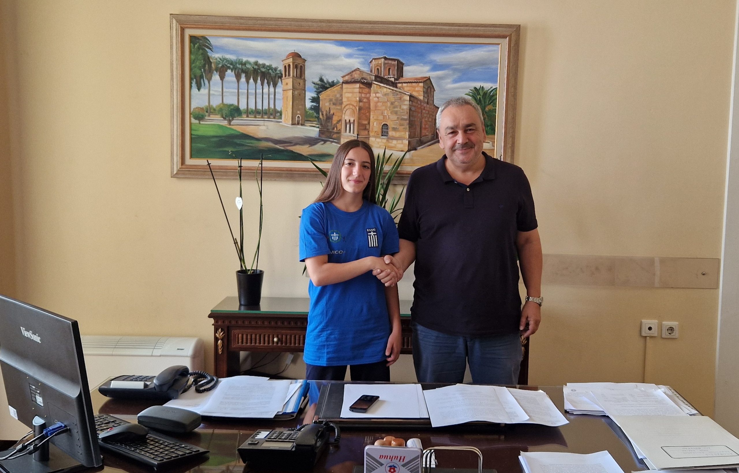 Ο Δήμαρχος Πηνειού κ. Αλέξης Καστρινός καλωσόρισε εγκάρδια τη μικρή πρωταθλήτρια, η οποία βρέθηκε στο κτίριο Σισίνη συνοδευόμενη από τον πατέρα της κ. Αλέξανδρο Σδούγα. Κατά τη διάρκεια της συνάντησης ο δήμαρχος είχε την ευκαιρία να ενημερωθεί από την αθλήτρια για τις τελευταίες επιτυχίες της τόσο σε πανελλήνιο όσο και σε ευρωπαϊκό επίπεδο ενώ η συζήτηση επεκτάθηκε στα άμεσα σχέδια της νεαρής πυγμάχου, στα όνειρα και τις φιλοδοξίες της.