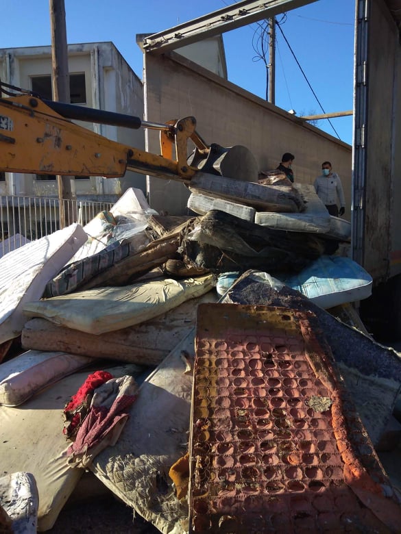 Για να πραγματοποιηθεί και η νέα αυτή θετική εξέλιξη της απομάκρυνσης των στρωμάτων, απαιτήθηκε να «τρέξουν» από το Δήμο συγκεκριμένες, προβλεπόμενες εκ των νόμων και των κανονισμών διαδικασίες. Μιας και δεν μπορούσε να ορίσει οποιοδήποτε άλλο χώρο εναπόθεσης γιατί τα αντικείμενα ήταν ογκώδη, κι έτσι με την ανάθεση στην πιστοποιημένη εταιρεία η διαχείριση γίνεται με ιδανικό σε σχέση και με την ιδιαιτερότητα αυτών των υλικών. Στην προκειμένη περίπτωση, η μεταφορά των στρωμάτων που είχαν υπερ-συσσωρευτεί στο παλιό νοσοκομείο Πύργου, γίνεται στην έδρα της εταιρείας στην Αθήνα.