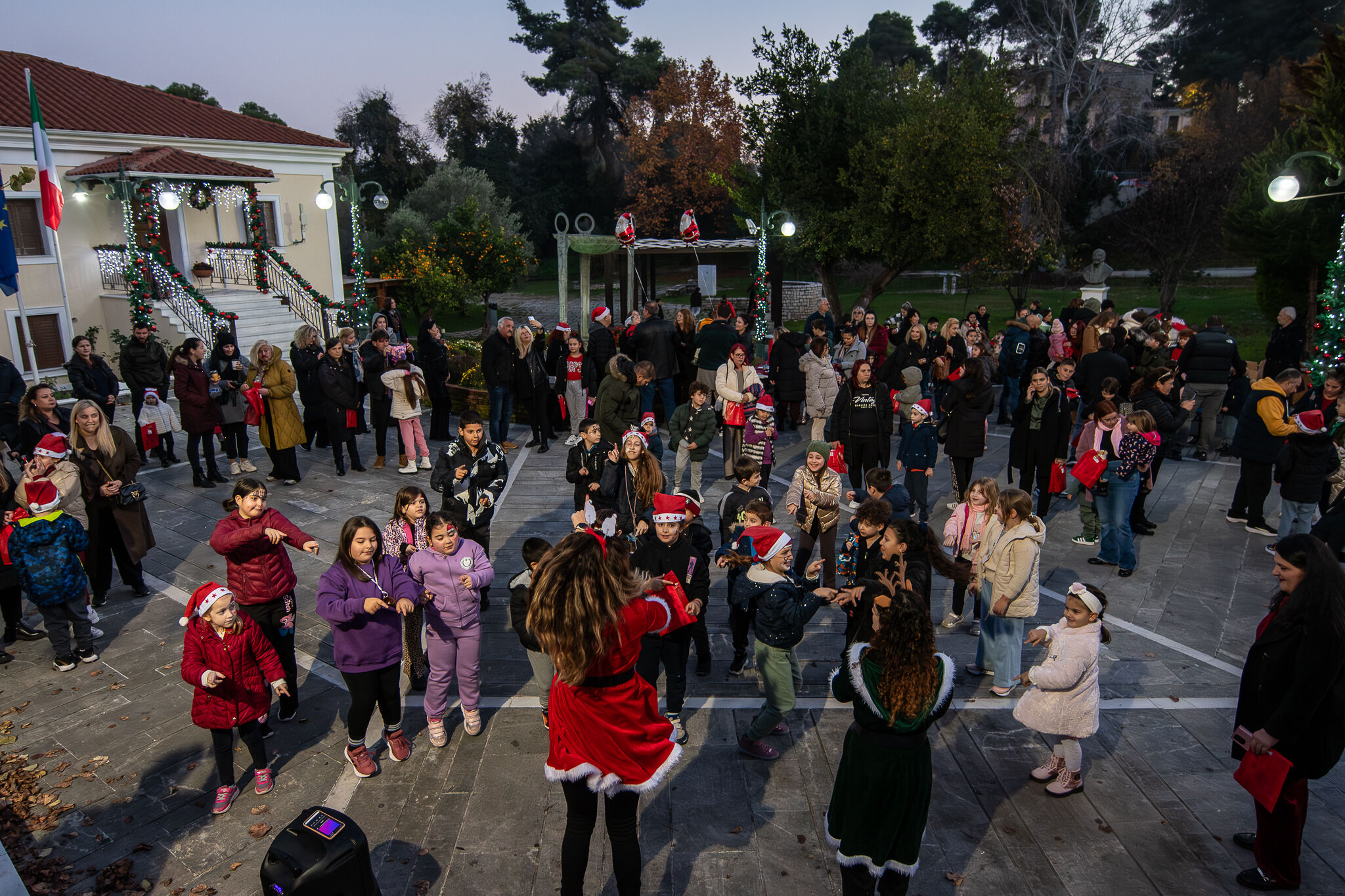 Η βραδιά κορυφώθηκε με την εντυπωσιακή εμφάνιση του Αγίου Βασίλη, ο οποίος μοίρασε δώρα