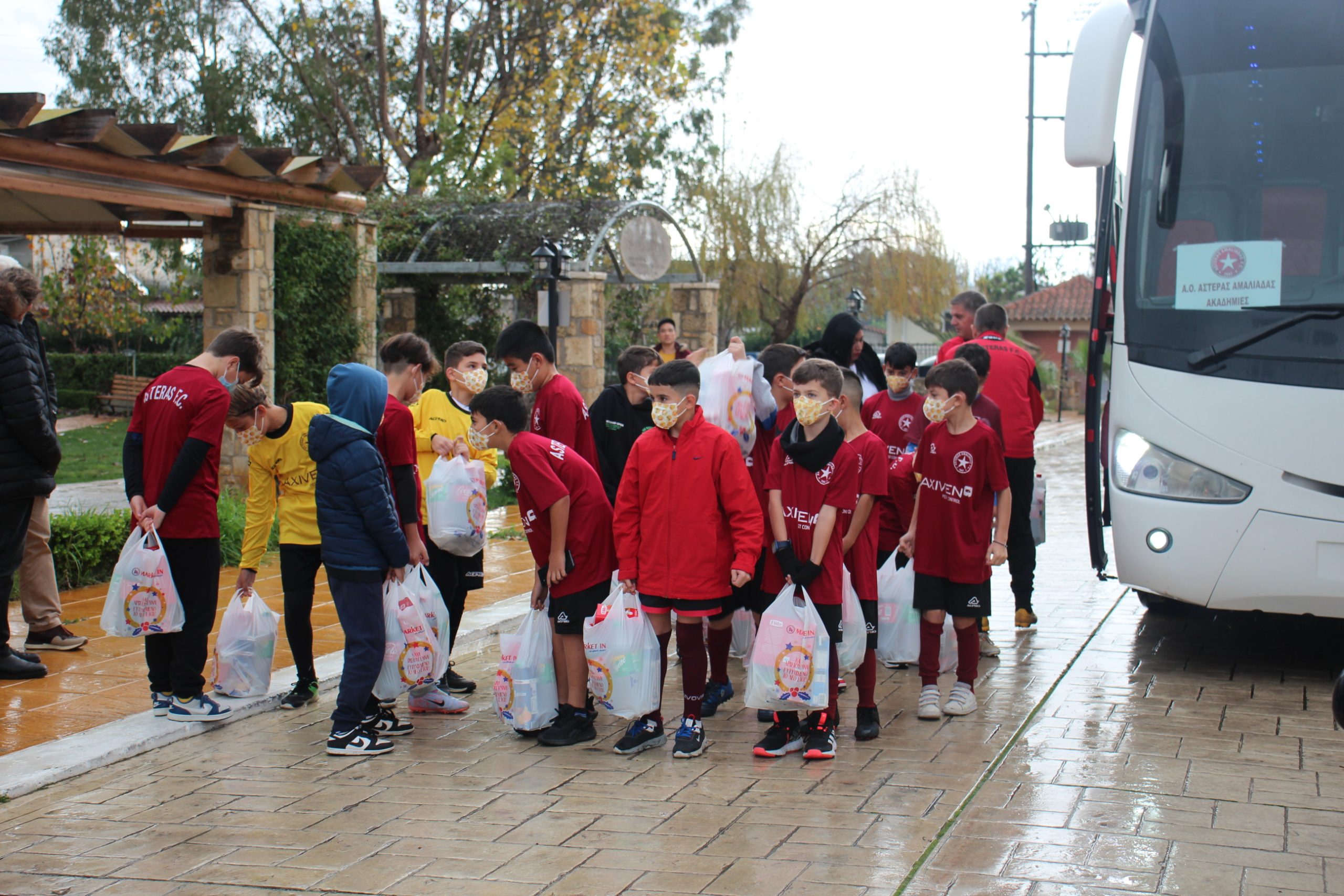 τους θετική ενέργεια και τρόφιμα. Τους μικρούς αθλητές συνόδευαν οι προπονητές τους Λύσανδρος