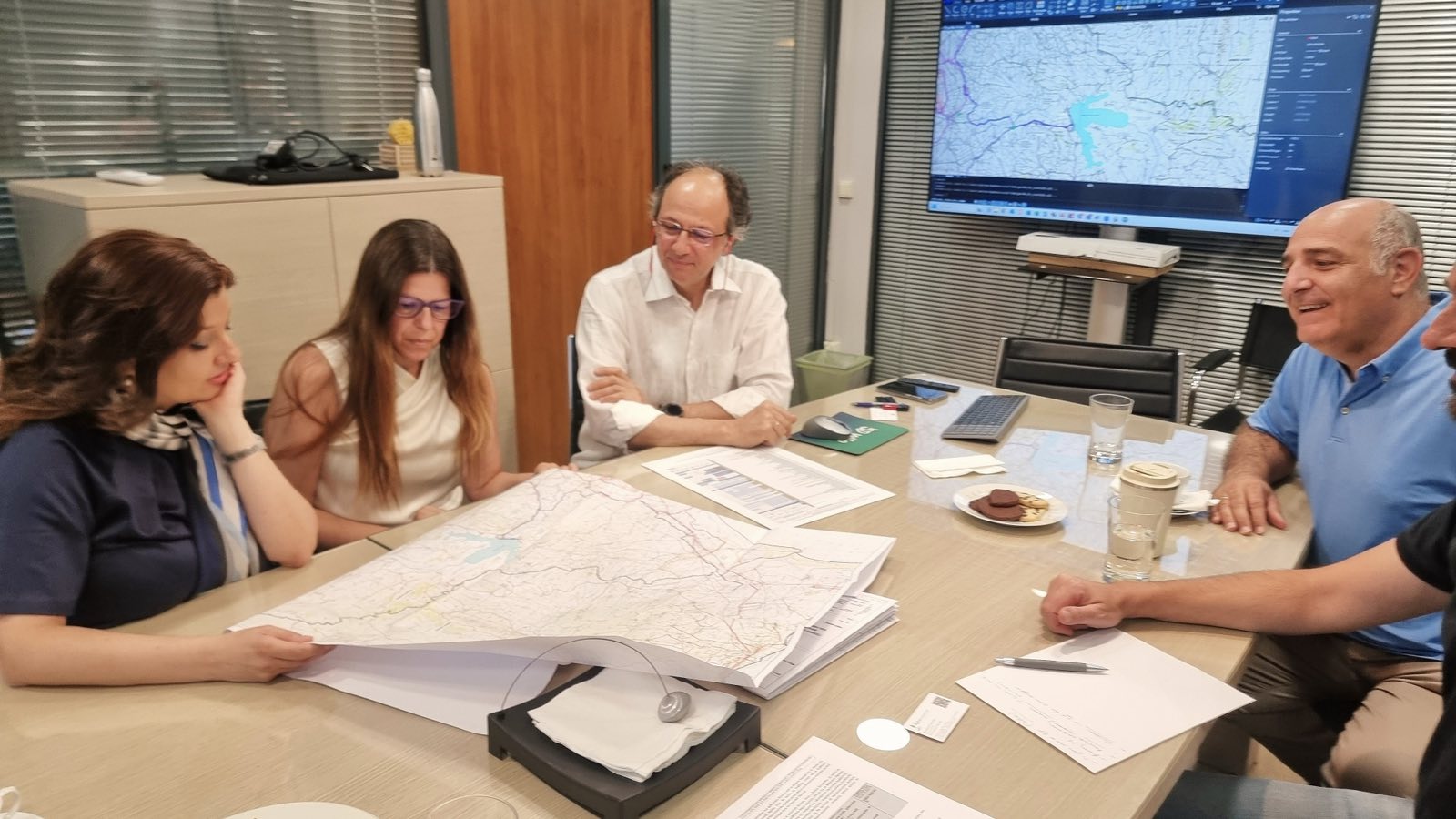 εκπροσώπους της κοινοπραξίας των εταιριών που έχουν αναλάβει την εκπόνηση των μελετών, στην διάρκεια της οποίας είχαν εξετασθεί η περιβαλλοντική αναβάθμιση των παραλίμνιων περιοχών, η ανακαίνιση του Φράγματος, η αξιοποίηση της Λίμνης Καραμανλή, η αναβάθμιση και δημιουργία υπογειοποιημένου δικτύου υδάτων και ο σχεδιασμός νέων αρδευτικών δικτύων στη Μανωλάδα, συνολικής έκτασης 114.000 στρεμμάτων, η αξιοποίηση της αλιείας του ταμιευτήρα, η βελτίωση των συνθηκών λειτουργίας των κατασκευασμένων δικτύων του ΤΟΕΒ Μυρτουντίων και ο σχεδιασμός νέων έργων άρδευσης του τ. Δήμου Ωλένης, με την κατασκευή λιμνοδεξαμενής και του φράγματος Βλαχαίικου.