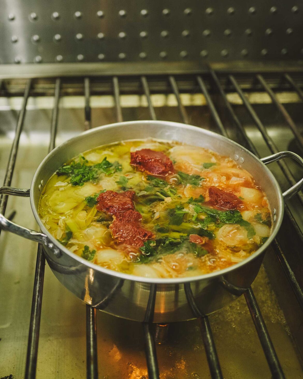 - Σκεπάζουμε ξανά με το καπάκι και αφήνουμε τα υλικά να μαγειρευτούν για περίπου 30 λεπτά ή μέχρι να έχουν μαλακώσει όλα καλά και τα περισσότερα υγρά να έχουν σωθεί.