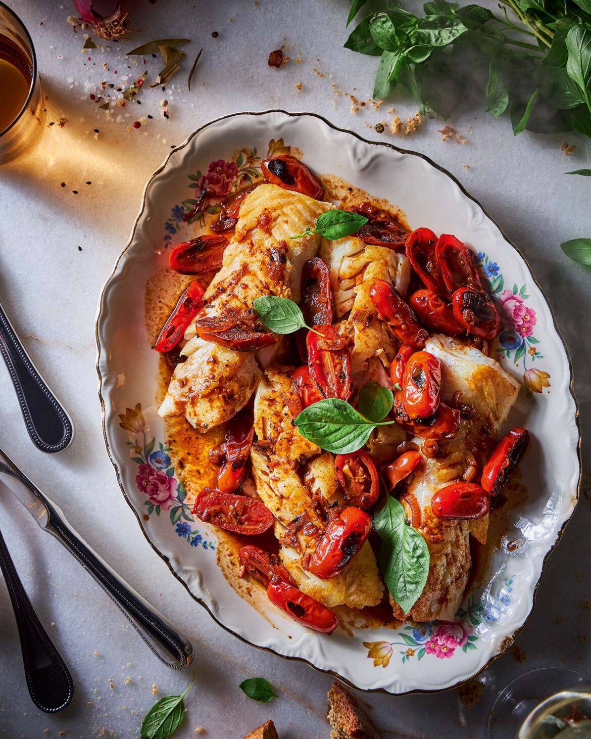 - Τέλος, ρίχνουμε τις κορφούλες βασιλικού, ανακατεύουμε και αποσύρουμε από τη φωτιά.