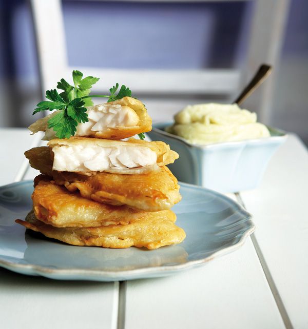 Μπακαλιάρος με κουρκούτι μπίρας με σκορδάτη μαγιονέζα ελαιόλαδου
